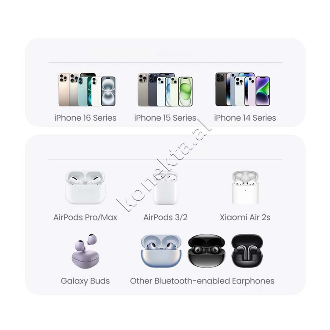 MUNDESON KARIKIMIN E NJEKOHSHEM TE IPHONE-IT (DERI NE 15W) DHE KUFJEVE BLUETOOTH (DERI NE 5W) PER EFIKASITET MAKSIMAL.