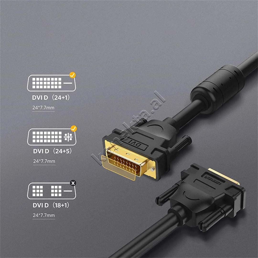 TRANSMETIM I LARTE DIGJITAL VIDEO : KABELLI UGREEN DVI-D 24+1 MBESHTET REZOLUCION DERI NE 2K (2560X1600 @ 60HZ) PER IMAZHE TE QARTA DHE TE DETAJUARA. ESHTE IDEAL PER PERDORIM NE LOJERA, PREZANTIME OSE SISTEME SHTEPIAKE TE KINEMASE. SHIJONI NJE TRANSMETIM TE PANDERPRERE PER NJE PERVOJE VIZUALE SUPERIORE.