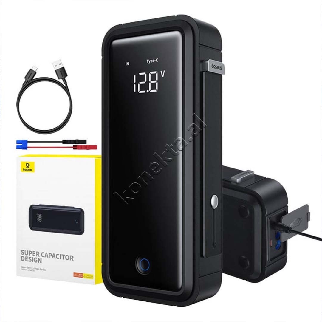 STARTUES PA BATERI : STARTUESI BASEUS KA NJE SUPERKONDENSATOR TE INTEGRUAR, DUKE PERDORUR TEKNOLOGJI TE AVANCUAR SUPERKONDENSATORI. NUK KERKON KARIKIM PARAPRAK – THJESHT LIDHENI ME BATERINE TUAJ TE DOBET TE MAKINES PER DISA MINUTA DHE AI ESHTE GATI PER TE NISUR AUTOMJETIN TUAJ MENJEHERE EDHE ME NGARKESE TE ULET.