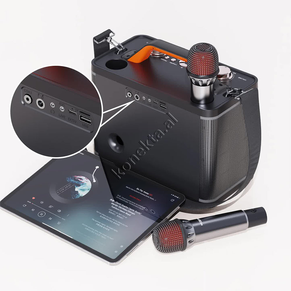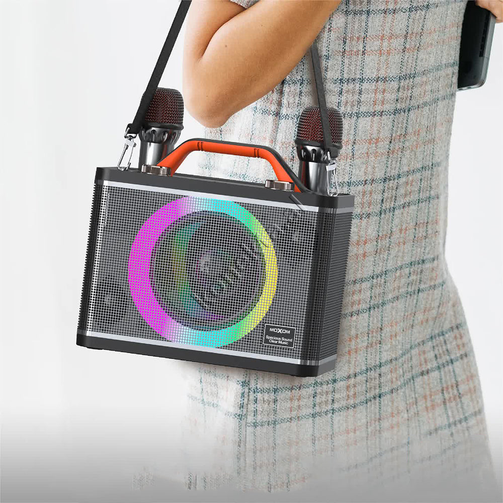 Boks Me Bluetooth 30W Moxom Me Super Bass + Dy Mikrofona Per Karaoke/Fjalime etj