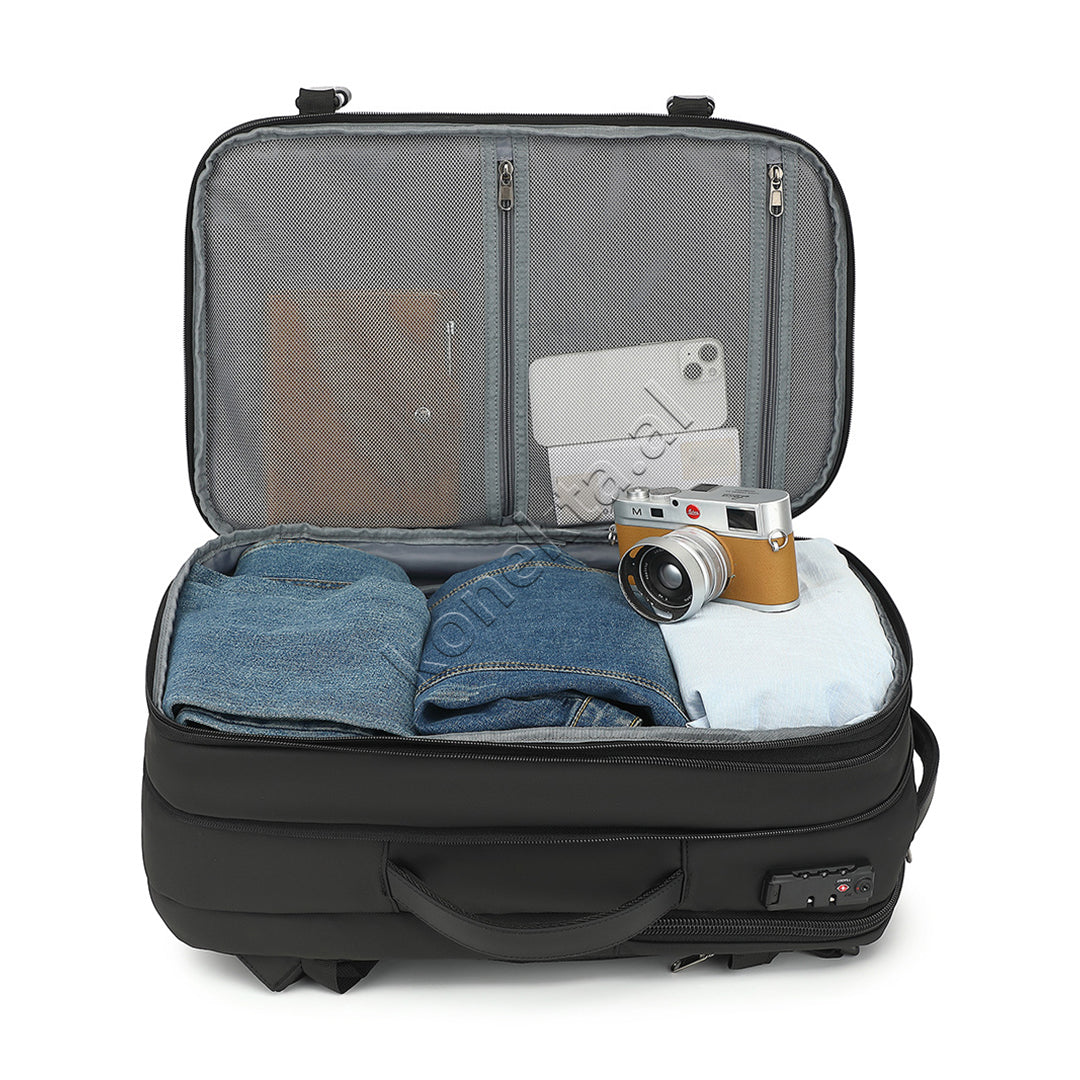KAPACITET I ZGJERUESHEM 20–35L : ME MUNDESINE E KOMPRESIMIT, ÇANTA OFRON HAPESIREN E NJE VALIXHJEJE, POR NE MADHESINE E NJE ÇANTE DORE QE PERPUTHET ME STANDARDET E SHUMICES SE LINJAVE AJRORE.