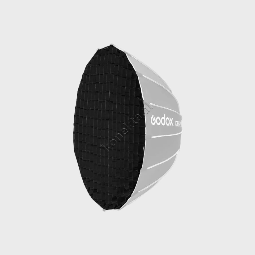 PROJEKTUAR PER SOFTBOX-IN PARABOLIK GODOX QR-P90T : RRJETA HONEYCOMB QR-P90T-G ESHTE ZHVILLUAR POSAÇERISHT PER SOFTBOX-IN PARABOLIK GODOX QR-P90T, DUKE OFRUAR KONTROLL TE PERQENDRUAR DHE TE SAKTE MBI DREJTIMIN E DRITES.
