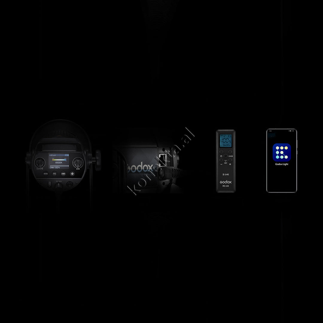 OPSIONE TE SHUMTA KONTROLLI : OFRON METODA TE NDRYSHME KONTROLLI PER FLEKSIBILITET. MUND TA RREGULLONI DRITEN DIREKT NE PAJISJE, ME VALE DUKE PERDORUR APLIKACIONIN GODOX LIGHT NE TELEFONIN TUAJ INTELIGJENT (ANDROID DHE IOS) OSE ME NJE TELEKOMANDE OPSIONALE RC-A6 (NUK PERFSHIHET).
