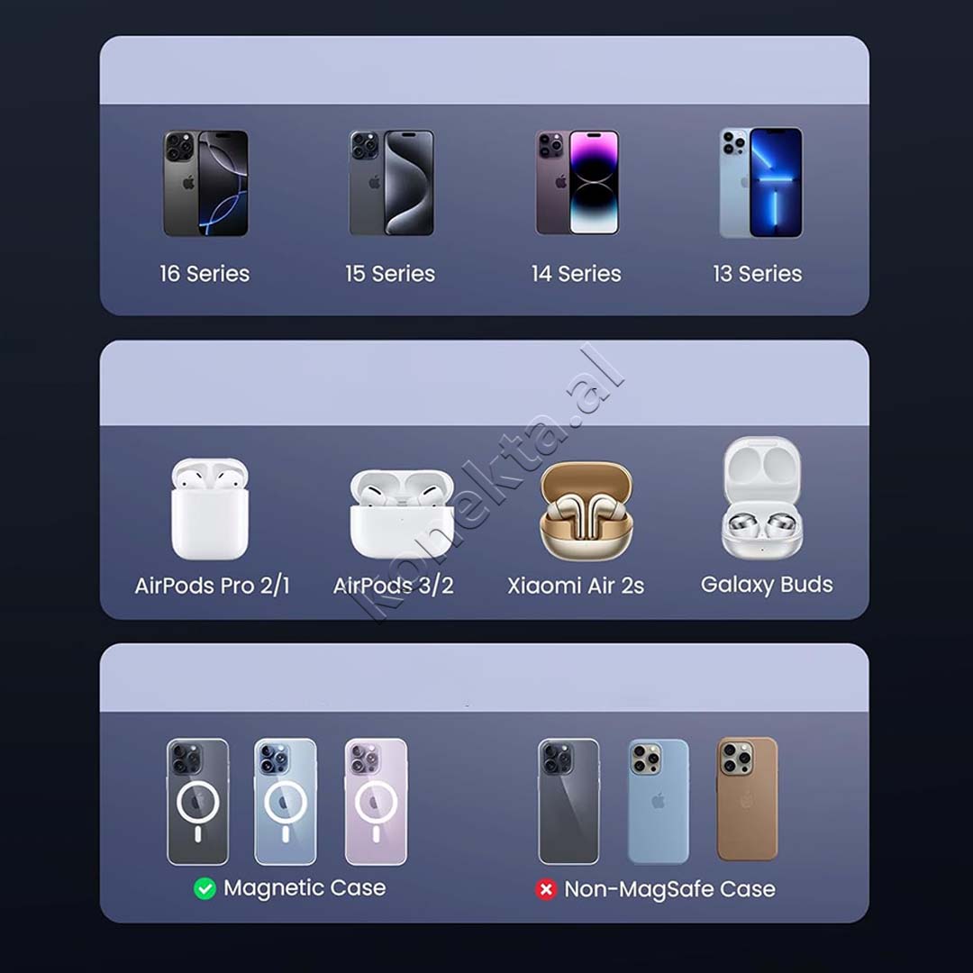 PERPUTHJE ME IPHONE 16, 15, 14, 13, 12 SERIES, AIRPODS 3/2/PRO, GALAXY BUDS DHE ÇDO PAJISJE QE MBESHTET QI.
