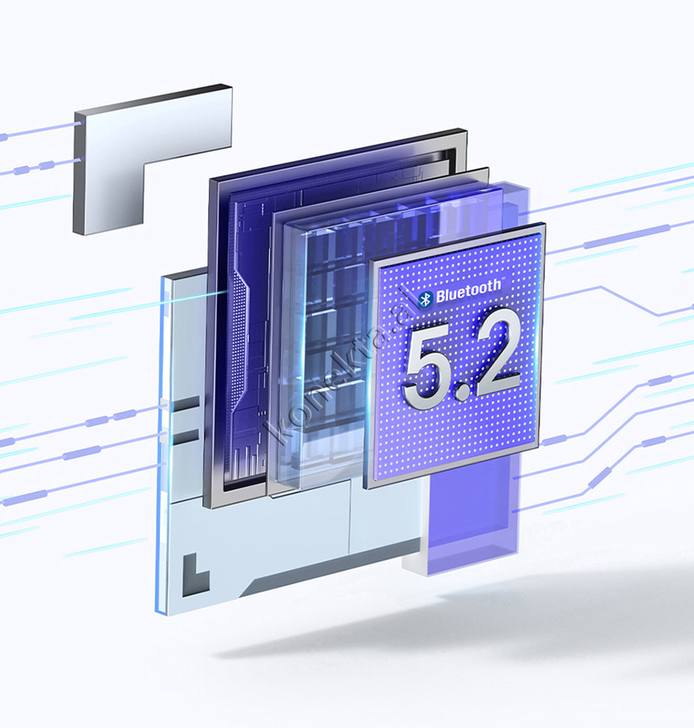 ÇIPI I INTEGRUAR BLUETOOTH 5.2 ME AFTESI TE FORTE KUNDER INTERFERENCES NUK E VONON SINJALIN E ZERIT DHE SIGURON TRANSMETIM TE STABLIZUAR