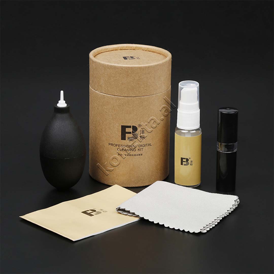 PERMBAN : 1x Solucion pastrimi, 1x Furçë pastrimi, 1x Pëlhurë mikrofibre për lente, 1x Letër pastrimi për lente, 1x Fshesë me ajër (air blower)