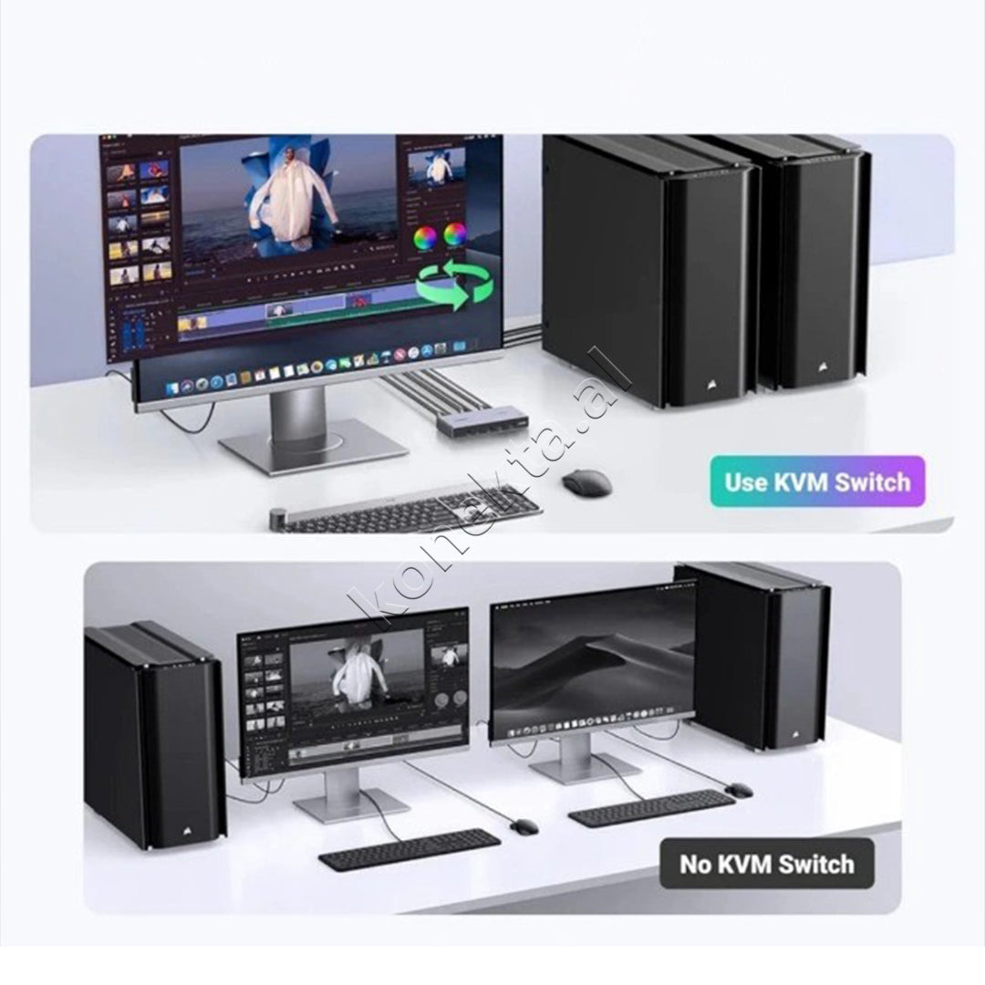 KONTROLLONI 2 KOMPJUTERA ME NJE MONITOR : LEJON NDARJEN E NJE MONITORI, TASTIERE, MAUSIT DHE DERI NE 4 PAJISJEVE USB MIDIS DY KOMPJUTEREVE, DUKE E BERE AMBIENTIN E PUNES ME TE ORGANIZUAR DHE EFIKAS.