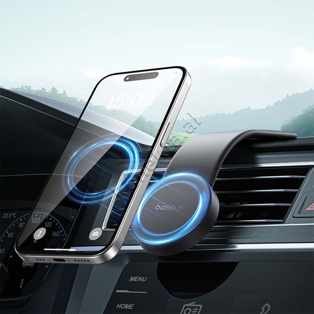 MBAJTESI BASEUS PRIMETRIP C02 AIR SIGURON PERDORIM TE SIGURT TE TELEFONIT GJATE DREJTIMIT TE MAKINES, IDEAL PER NAVIGIM, THIRRJE ZANORE DHE MUZIKE PA SHPERQENDRIM.
