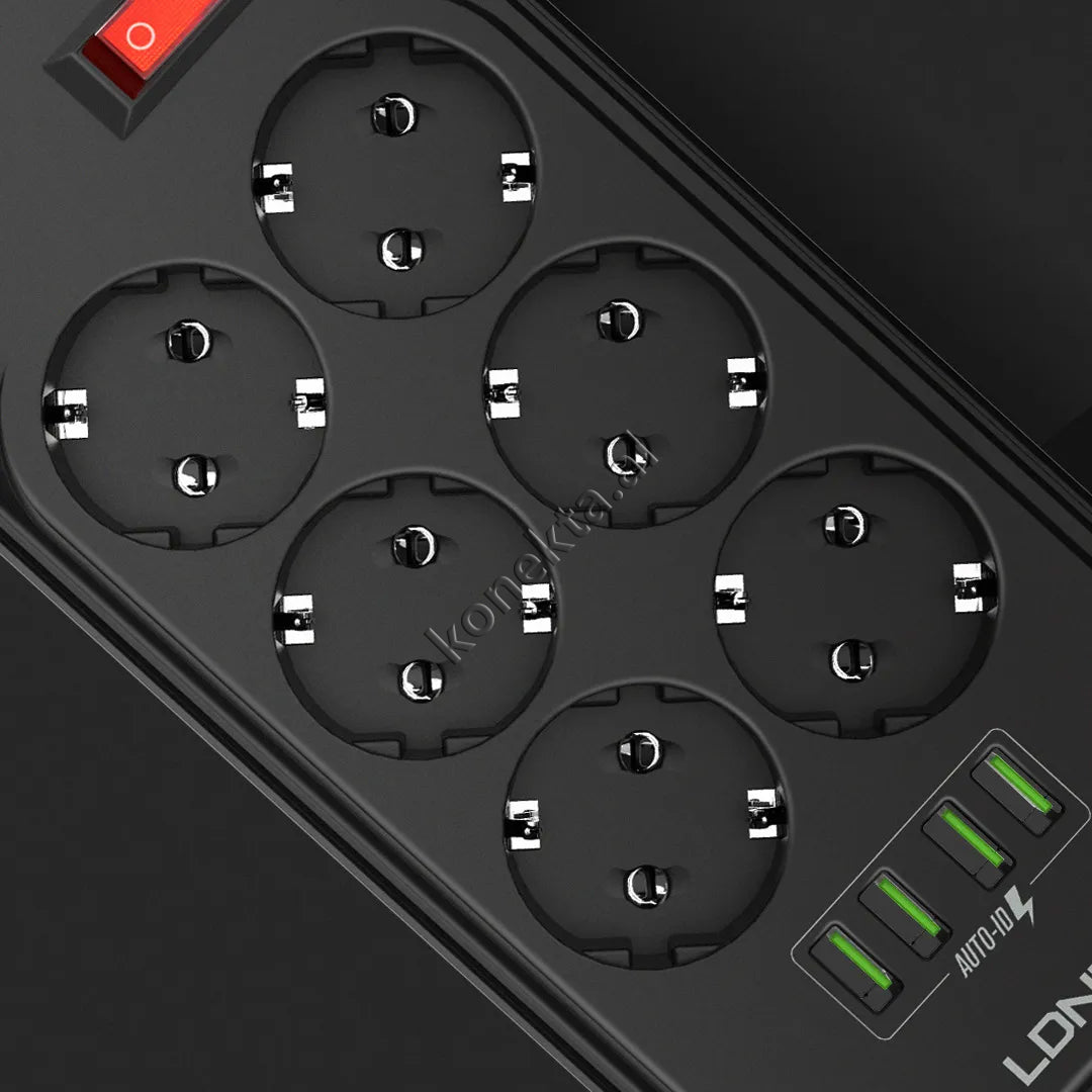 Multiprize 6 Vendeshe Me 4 Porta Usb Me Njohje Inteligjente E Karikim Te Shpejte