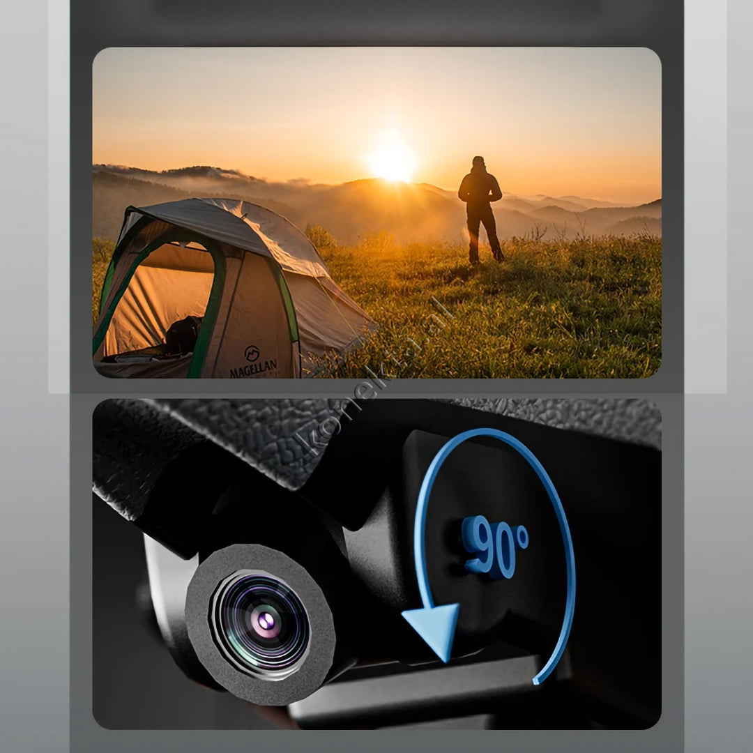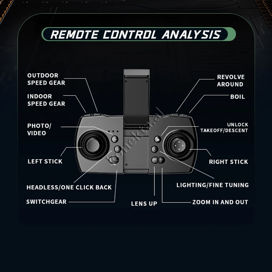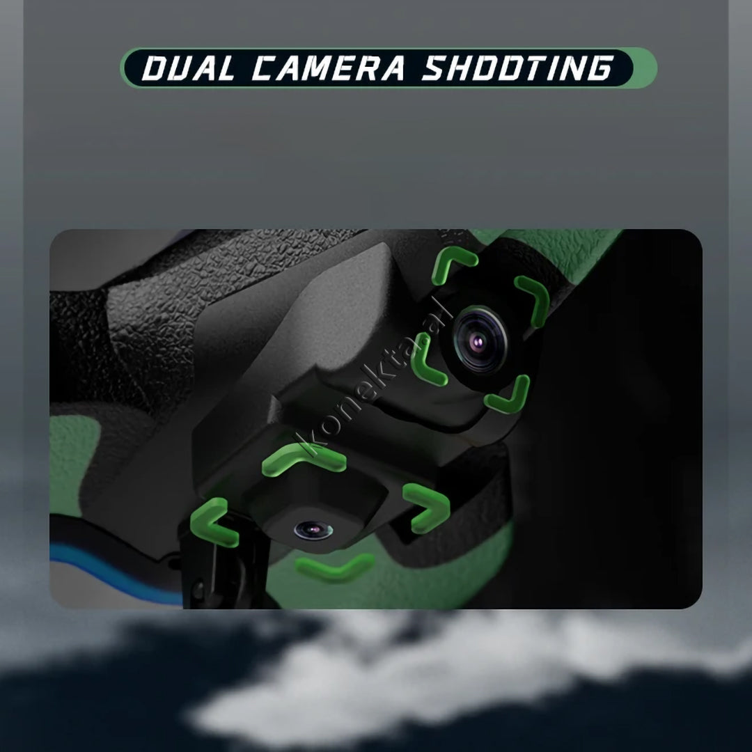 - Kamera HD 4K me rrotullim 90°, me lente ekselente për regjistrim me performancë të lartë. Ka edhe kamerë të dytë për pamje nga ana e poshtme e dronit.